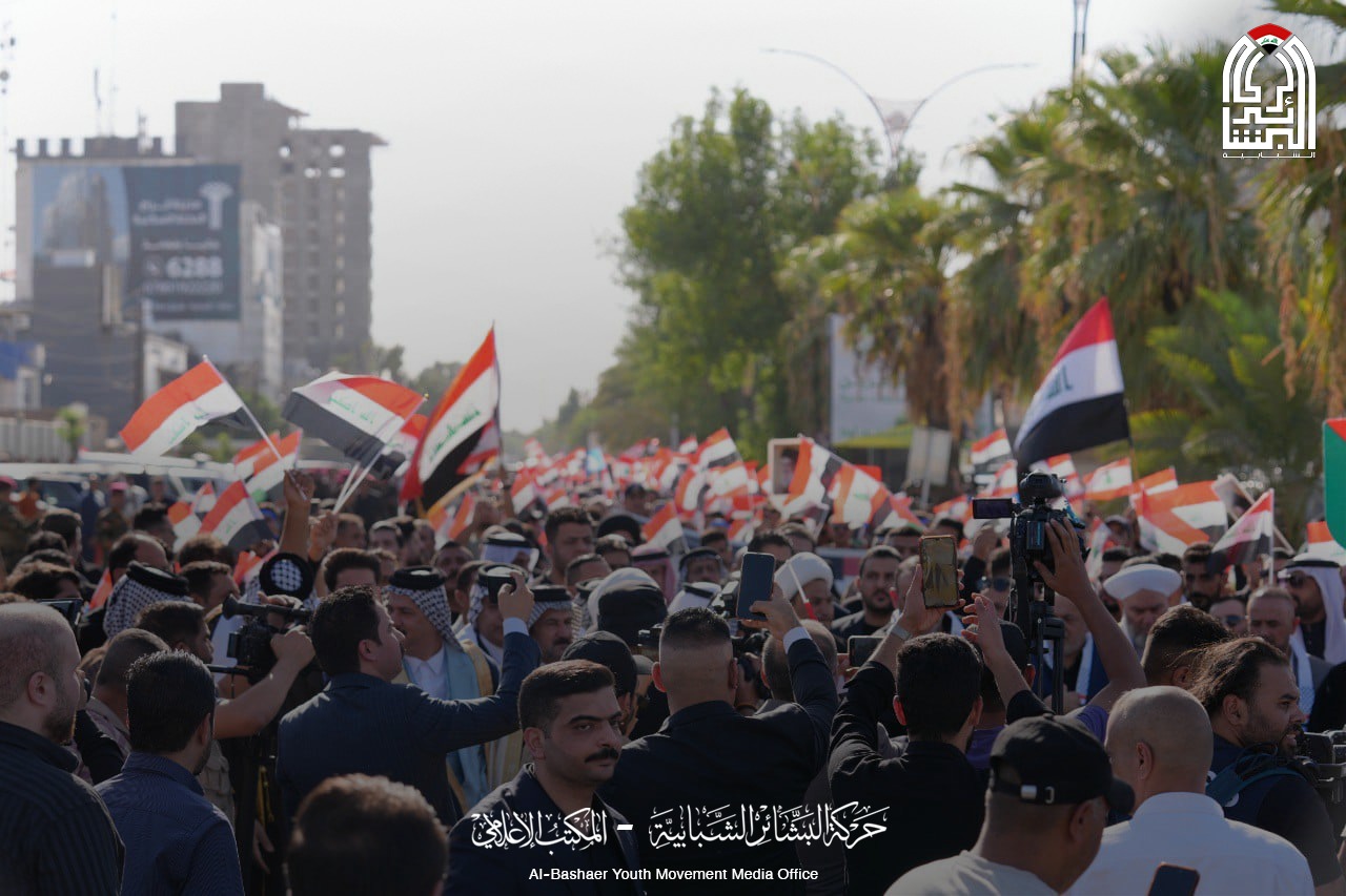 هذا الحشد الجماهيري يعكس التزام حركة البشائر بالقضايا العادلة، ويؤكد على أن العراق يقف دائماً مع أشقائه في مواجهة الظلم والعدوان.