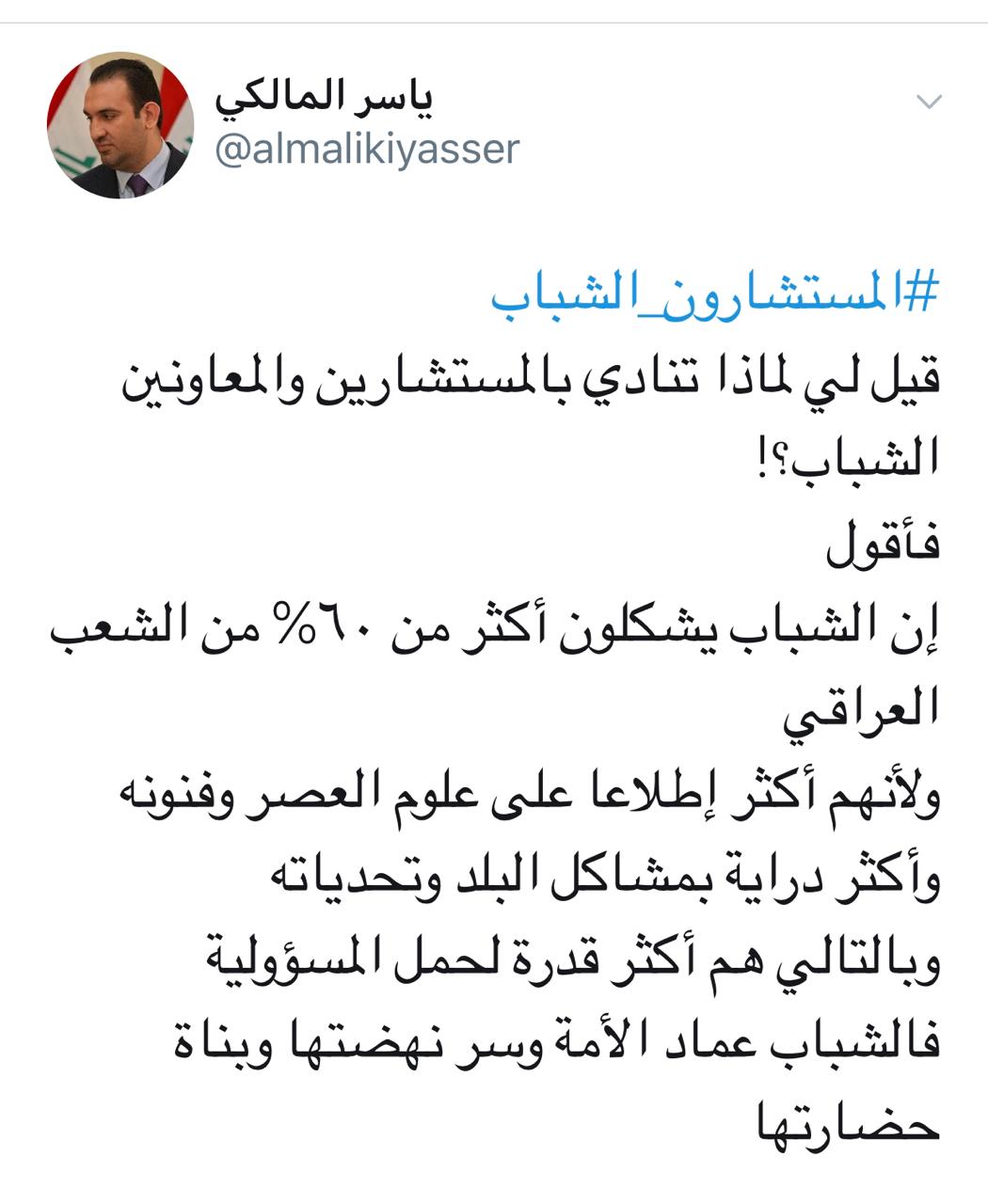الأمين العالم لحركة البشائر الشبابية الأستاذ #ياسر_المالكي وفي تغريدة له يبين سبب تبنيه لمشروع تمكين الشباب.