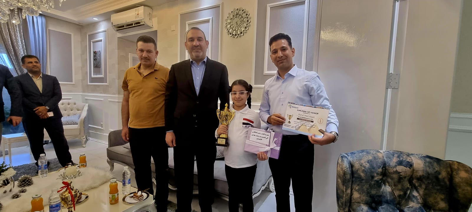 الدولية المقامة في مصر، (رهف هادي البارودي) و (دينا محمد قاسم المسلماني)، ورفعن مع زملائهن رأس العراق عاليا بين البلدان، وأكد المالكي ان هؤلاء التلاميذ الافذاذ يمثلون انموذجا للتلميذ العراقي المجد والمجتهد، وهم محل فخرنا واعتزازنا، وينبغي على الجهات المسؤولة والمعنية دعمهم بكل الطرق المادية والمعنوية، لتكريمهم وتشجيعهم على المزيد من العطاء والتألق في المحافل المحلية والدولية.