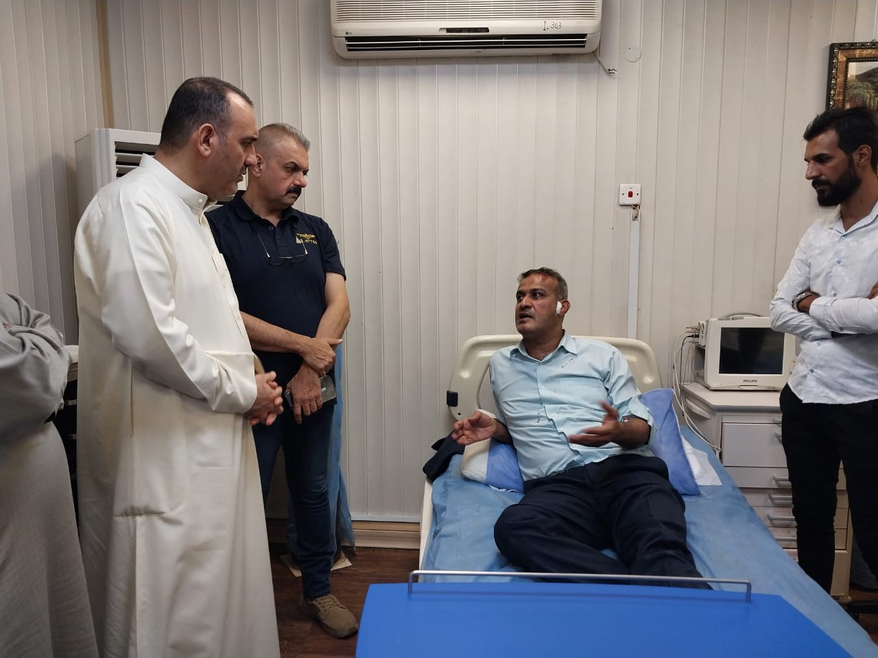 وصول رئيس كتلة دولة القانون النيابية السيد ياسر المالكي الى المستشفى للاطمئنان على صحة النائب السابق كاظم الصيادي بعد تعرضه لمحاولة اغتيال فاشلة