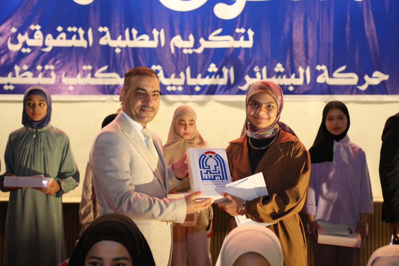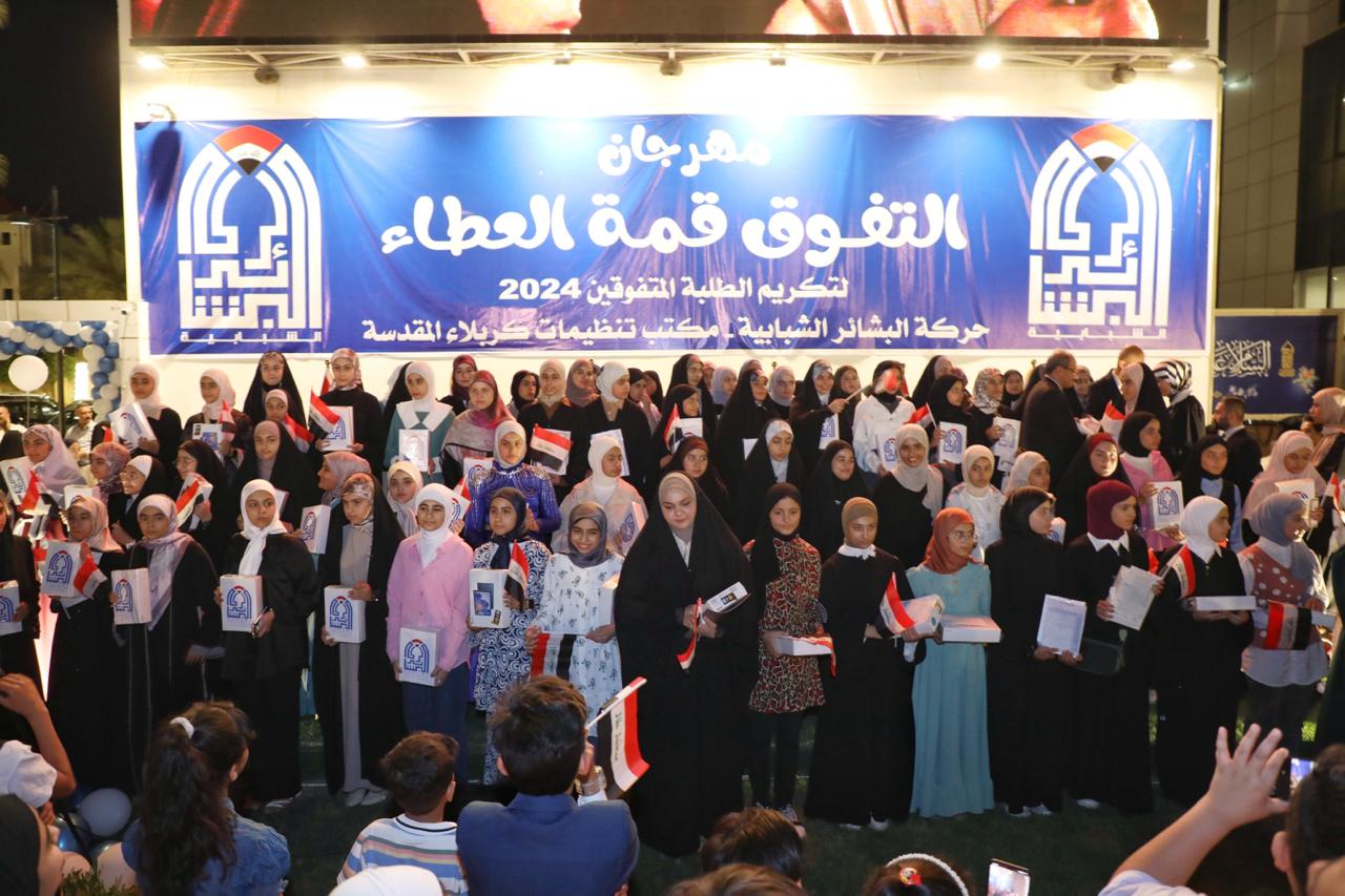حركة البشائر-مكتب كربلاء تقيم مهرجانها السنوي برعاية الامين العام للحركة الحاج ياسر المالكي لتكريم كوكبة من الطلبة المتفوقين بحضور نائب محافظ كربلاء السيد لقمان المالكي وممثلين عن حركة البشائر والمديرية العامة لتربية كربلاء ونقابة المعلمين وقسم التربية والتعليم في العتبة العباسية المقدسة فضلاً عن حضور غفير للعوائل الكربلائية ومختلف شرائح المجتمع على حدائق فندق البارون.